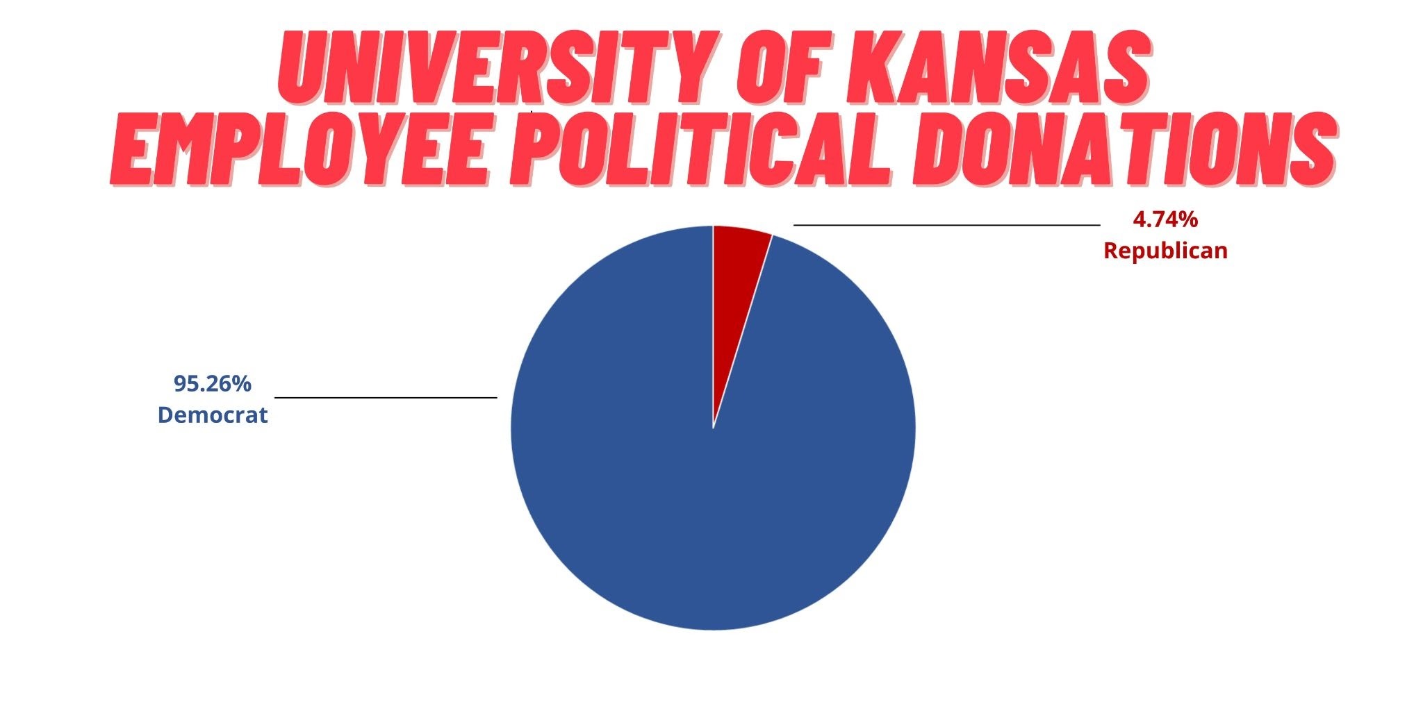 In the 2020 election cycle, 95.26% of University of Kansas employee donations went to Democratic candidates in federal elections, while 4.74% of donations went to Republican candidates in federal elections, according to data from OpenSecrets.