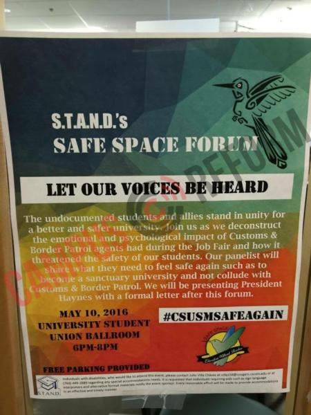 Now, a month later, students are demanding that their campus be converted into a “sanctuary university,” the advertisement for their safe space forum confirms.