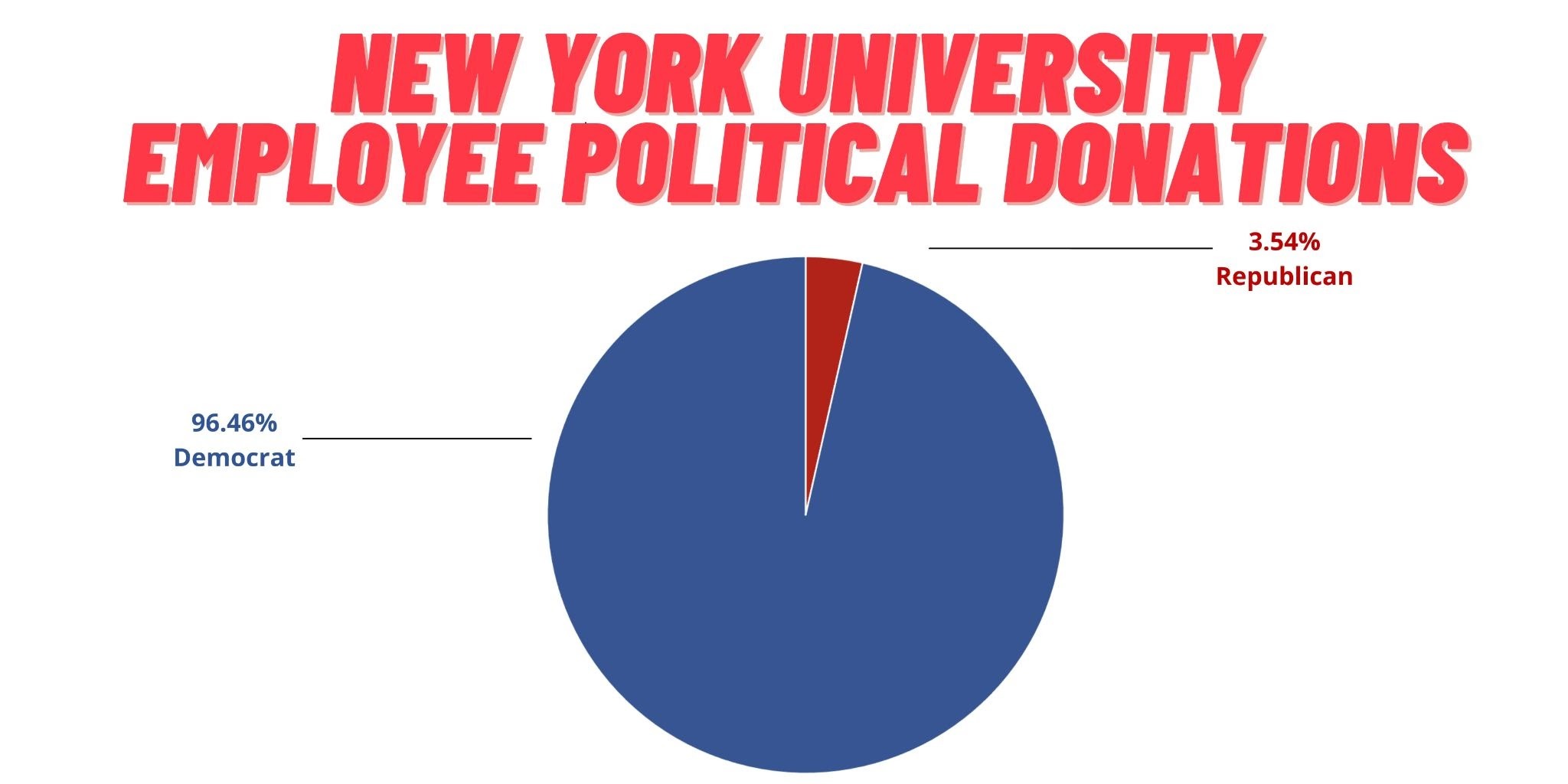 In the 2020 election cycle, 96.46% of New York University employee donations went to Democratic candidates in federal elections, while 3.54% of donations went to Republican candidates in federal elections, according to data from OpenSecrets.