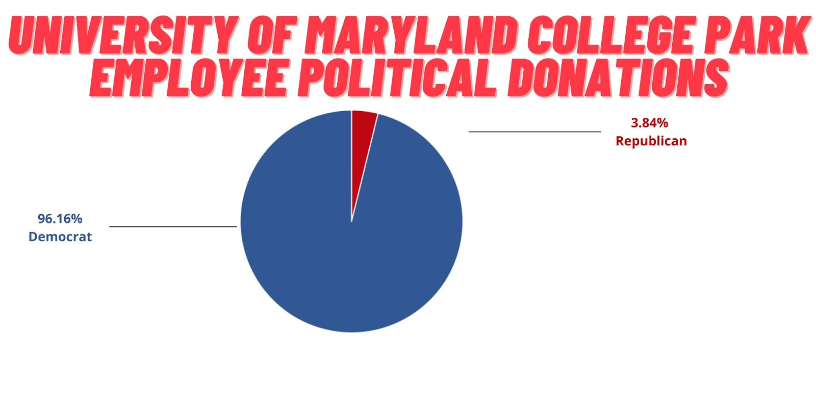 In the 2020 election cycle, 96.16% of University of Maryland College Park employee donations went to Democratic candidates in federal elections, while 3.84% of donations went to Republican candidates in federal elections, according to data from OpenSecrets.