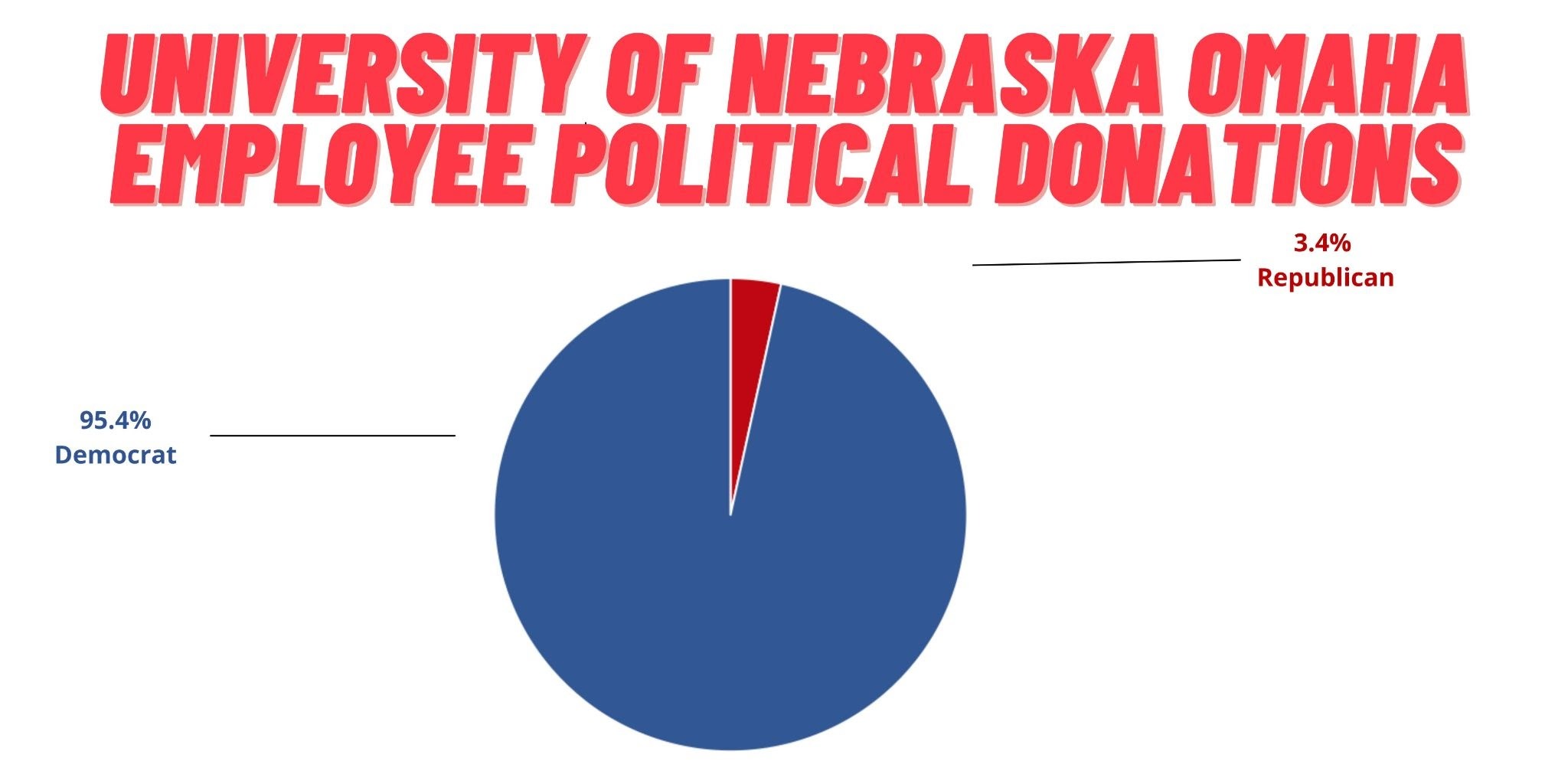 In the 2020 election cycle, 95.4% of University of Nebraska Omaha employee donations went to Democratic candidates in federal elections, while 3.4% of donations went to Republican candidates in federal elections, according to data from OpenSecrets.