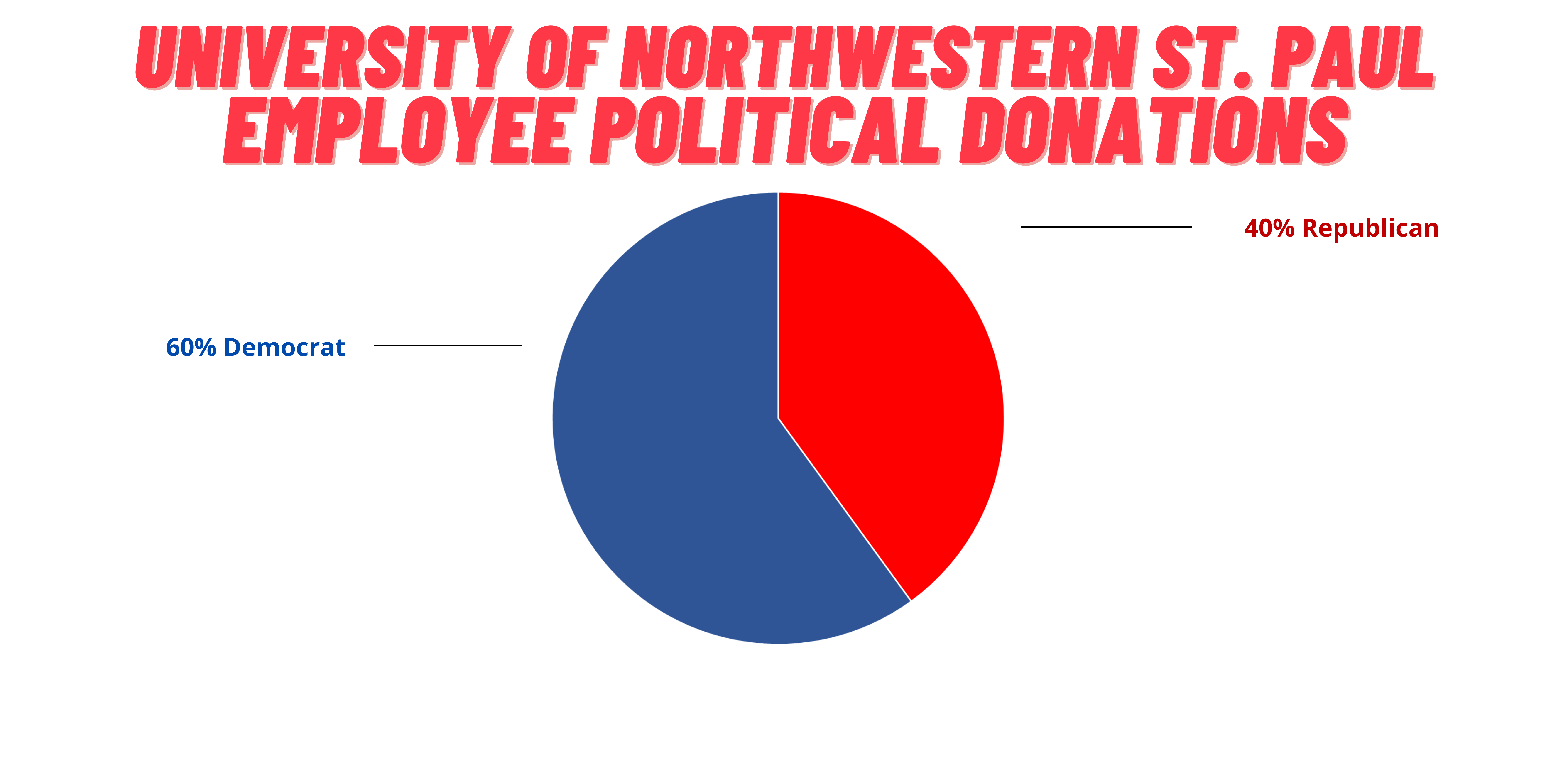 According to Campus Reform’s analysis of Federal Election Commission (FEC) data, University of Northwestern St. Paul employee political donations contributed 60% to Democratic candidates, while 40% went to Republican candidates during the 2020 cycle.