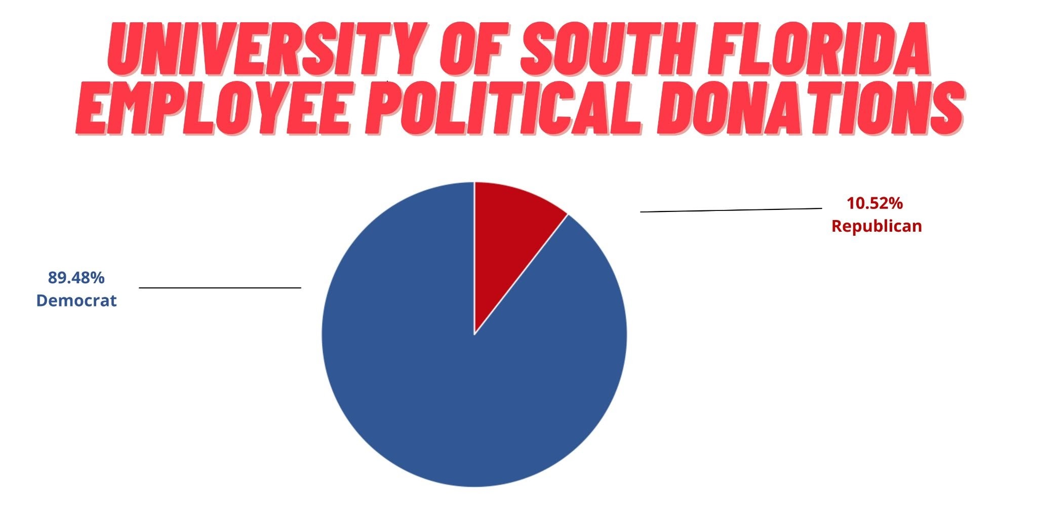 In the 2020 election cycle, 89.48% of University of South Florida employee donations went to Democratic candidates in federal elections, while 10.52% of donations went to Republican candidates in federal elections, according to data from OpenSecrets.