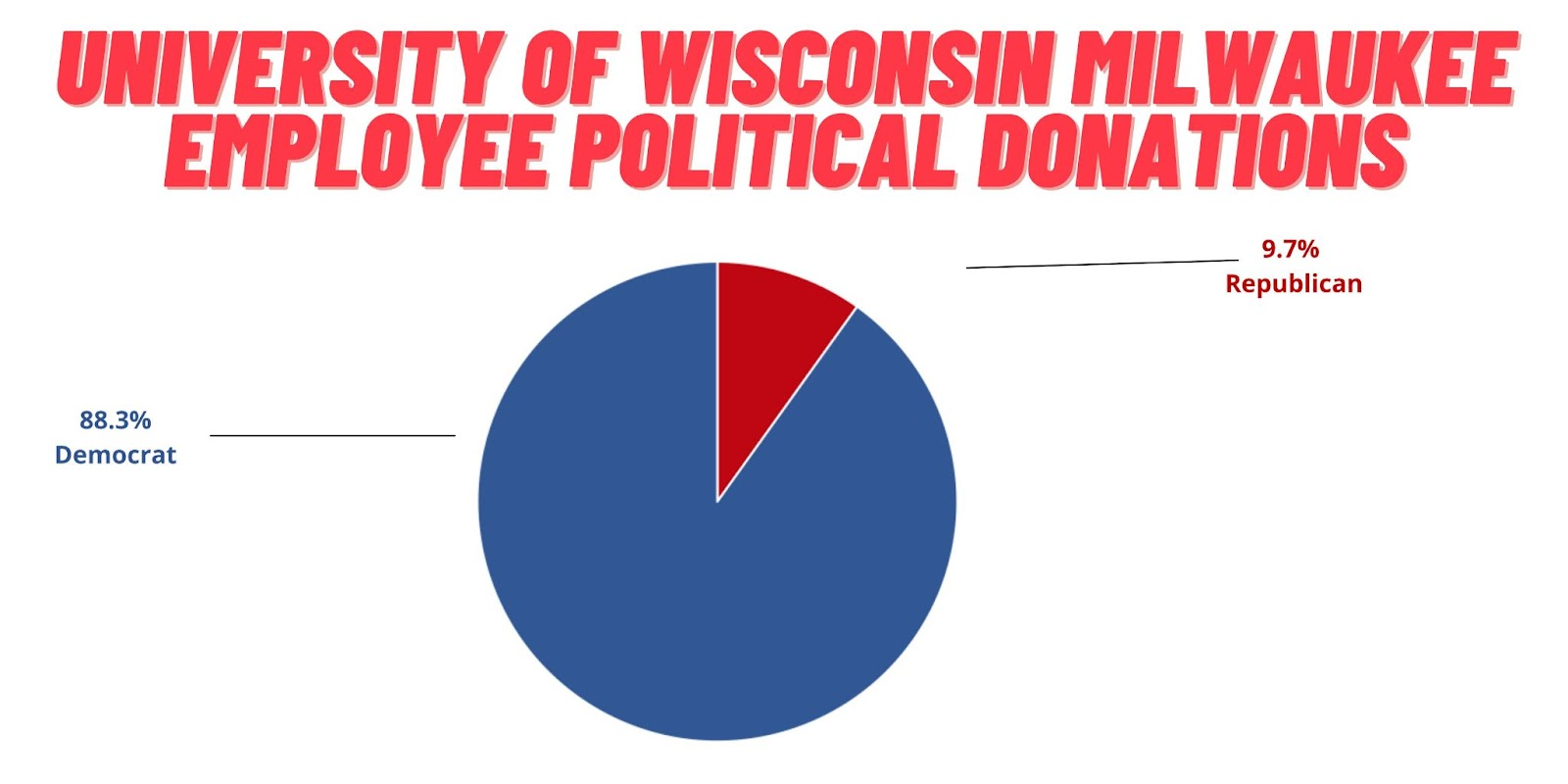 In the 2020 election cycle, 88.3% of University of Wisconsin Milwaukee employee donations went to Democratic candidates in federal elections, while 9.7% of donations went to Republican candidates in federal elections, according to data from OpenSecrets.