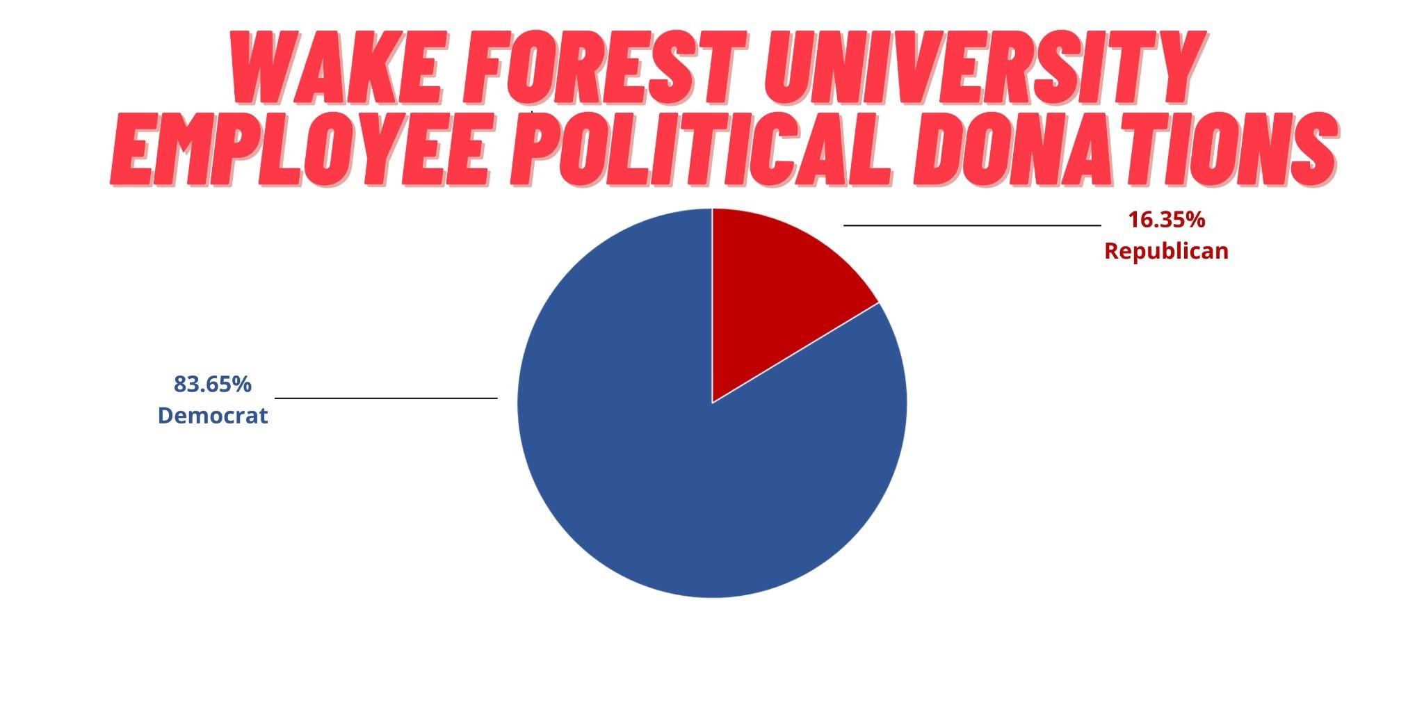In the 2020 election cycle, 83.65% of Wake Forest University employee donations went to Democratic candidates in federal elections, while 16.35% of donations went to Republican candidates in federal elections, according to data from OpenSecrets.