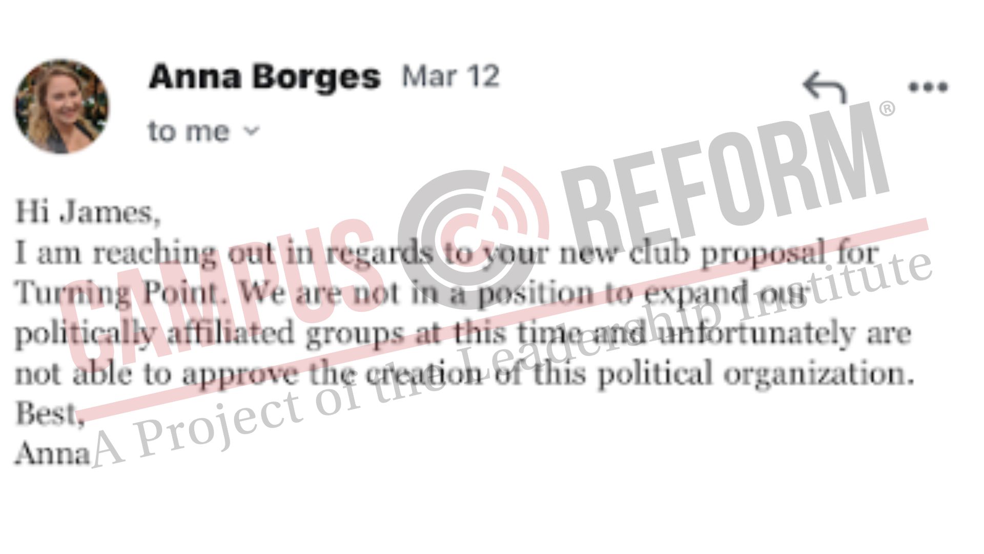 Ong told Campus Reform that his attempt marks the third rejection for the club in years, and that he believes the repeated denials reflect a bias specifically against TPUSA.