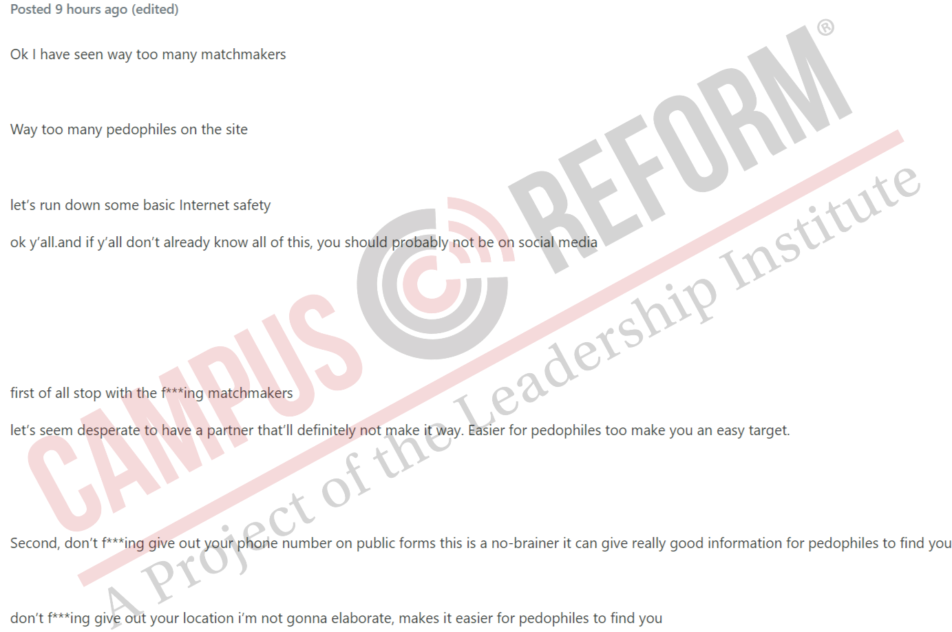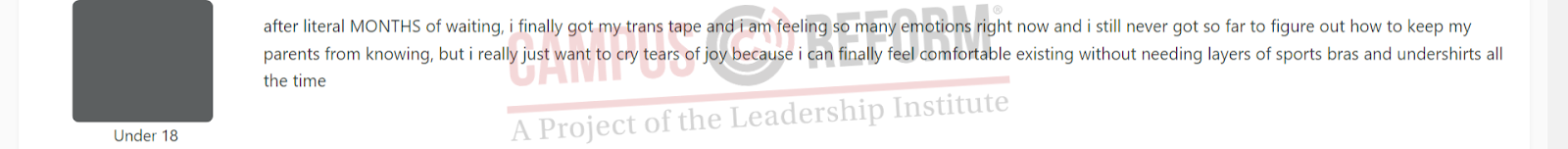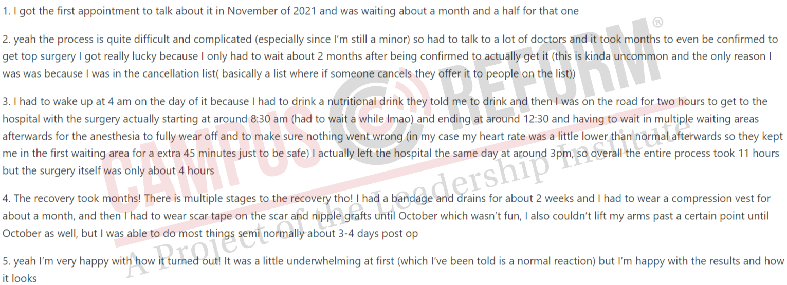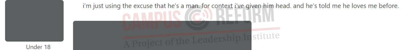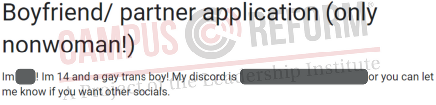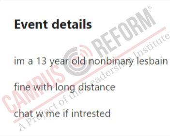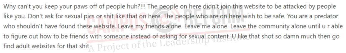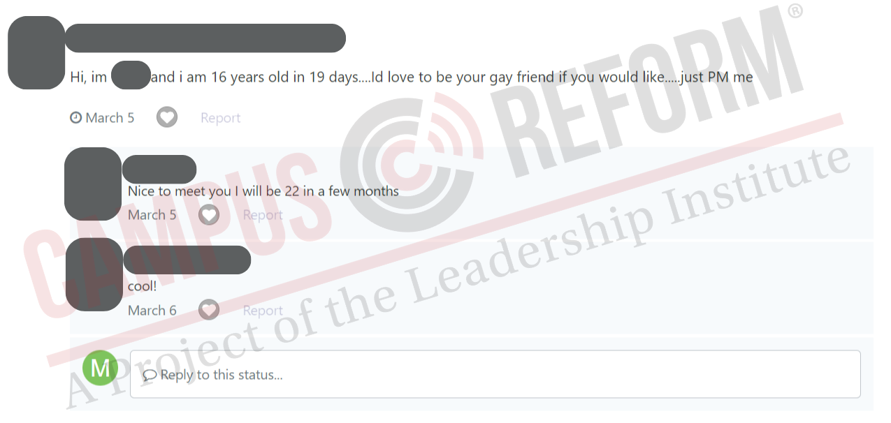 An investigation by Campus Reform seems to corroborate Gays Against Groomers’ analysis. The site has had instances of sexual harassment and adults seeking to privately message minors. In addition, minors on the site openly discuss sexual topics, post about engaging in risky behaviors, and discuss transitioning behind their parents’ backs.