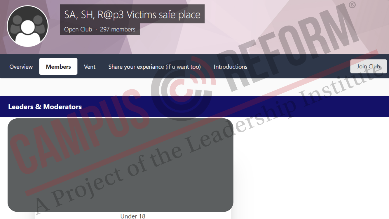 A sexual violence survivor support group, of which the administrator is a minor.