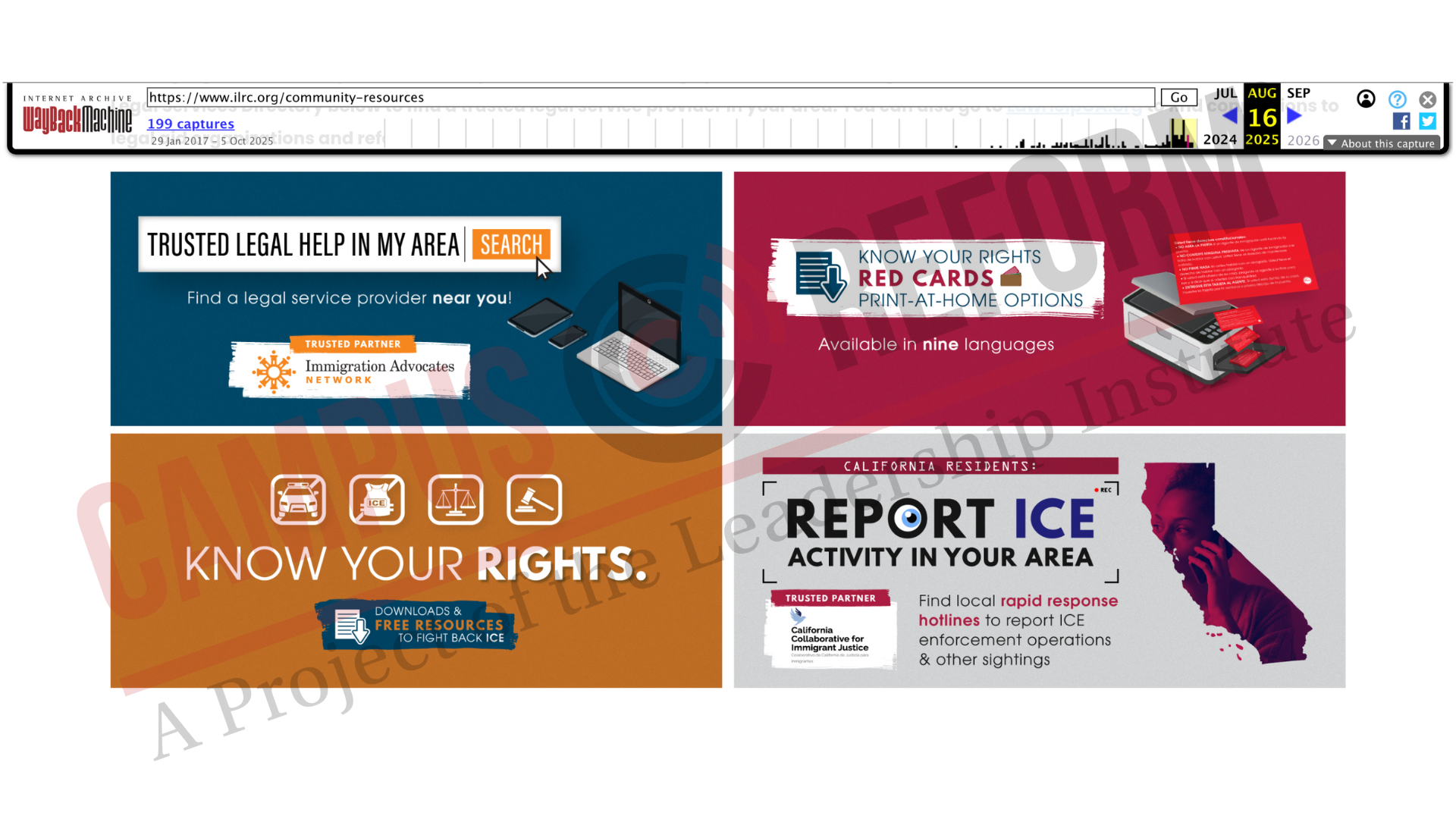 The archived page also included a link to “report ICE activity in your area,” offering “local rapid response hotlines to report ICE enforcement operations and other sightings.”