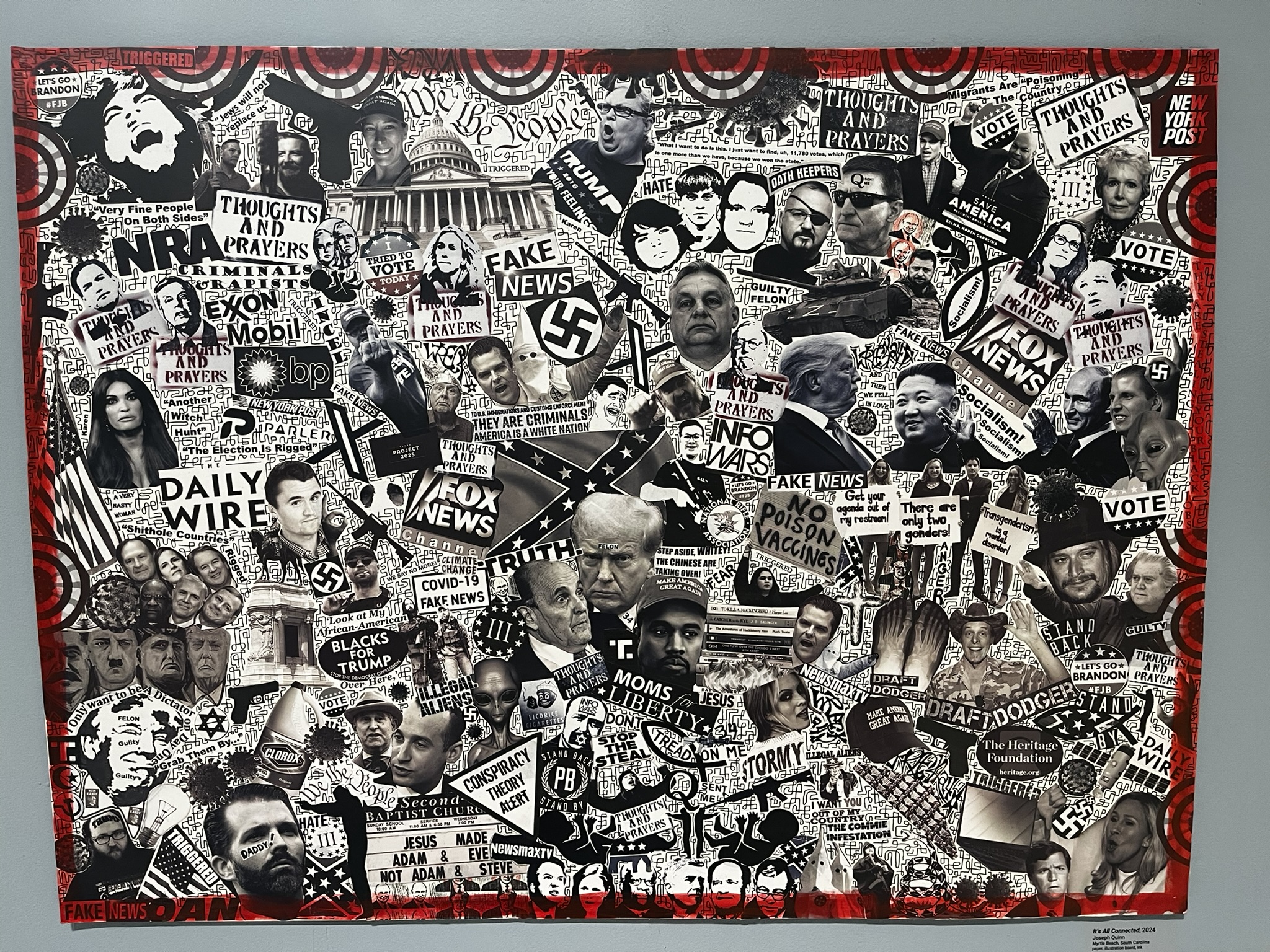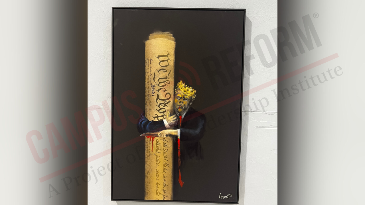 Artwork chosen to be featured in this year’s exhibit included works of President-elect Donald Trump alongside swastikas, Hitler, and Ku Klux Klan hoods. One notable piece depicts swastikas turning into Christian crosses behind Christian Speaker of the House, Mike Johnson.