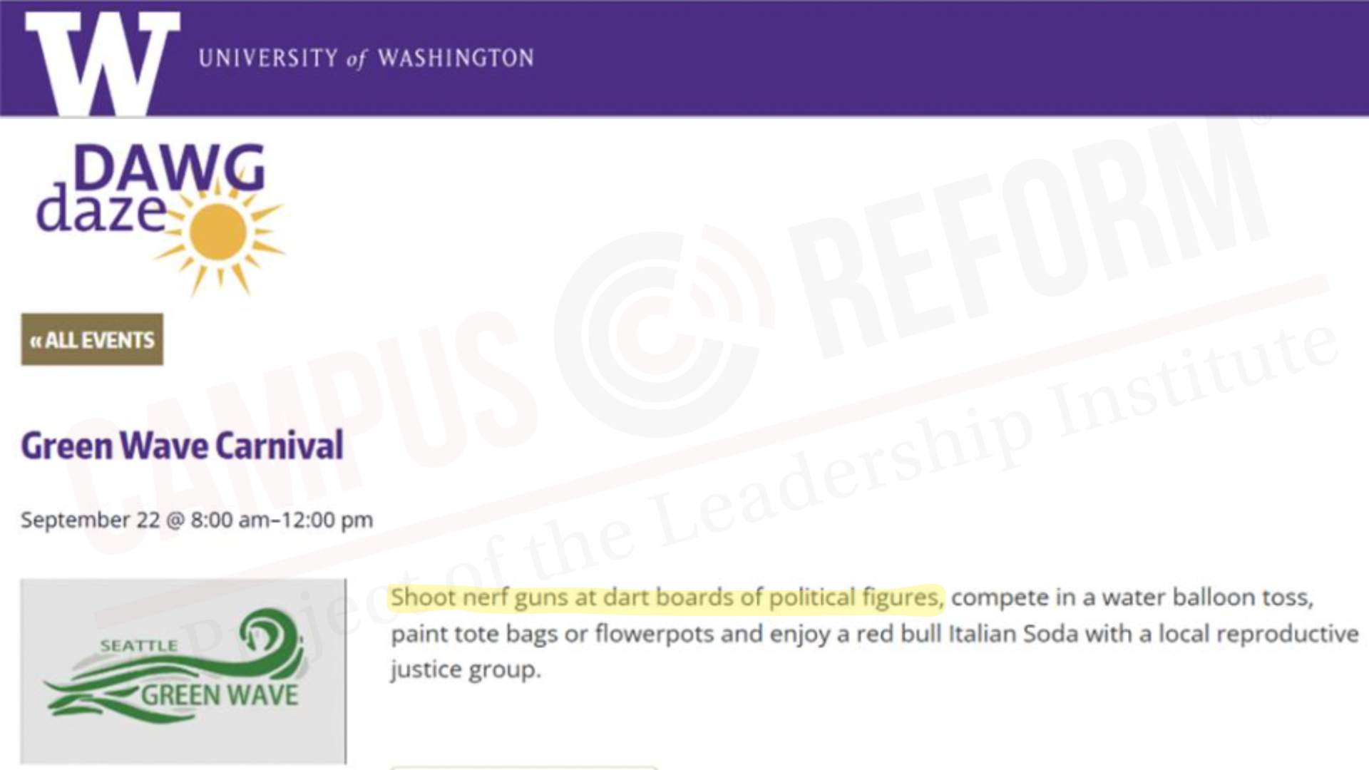 The activity was organized by Seattle Green Wave, a pro-abortion student group, and was scheduled for Sept. 22 as part of the group’s “Green Wave Carnival.”