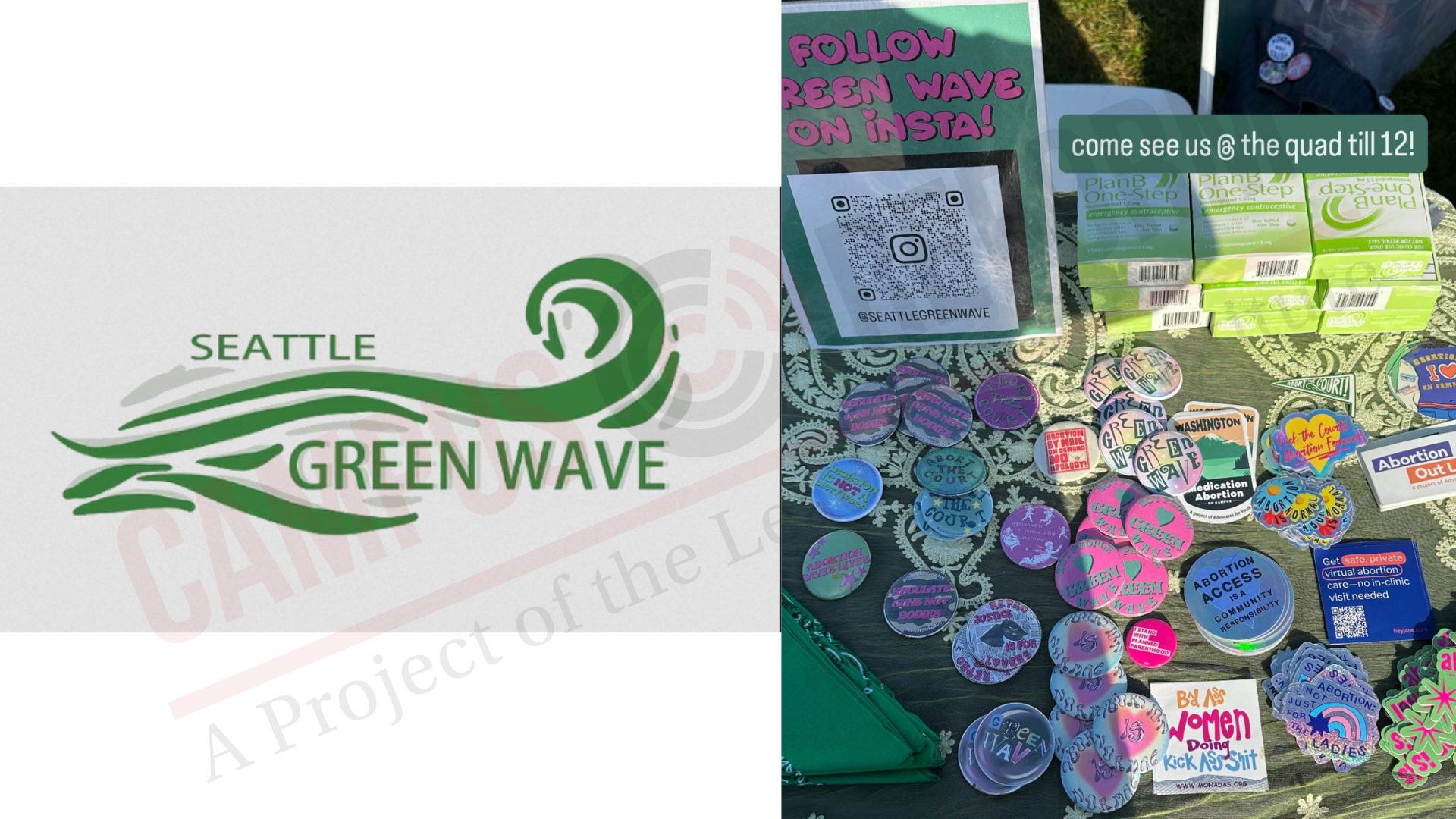 Campus Reform confirmed that Seattle Green Wave held its Sept. 22 campus event as planned but it appears to have dropped the controversial Nerf gun activity. Instead, the organization set up a table offering Plan B to college students.