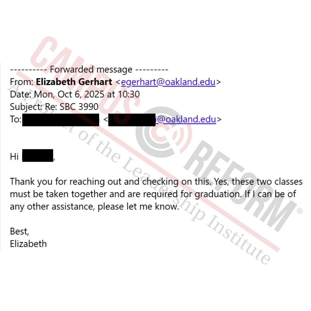 “From my understanding the Trump Admin has made it illegal to force DEI teaching but the website to report schools is down,” the whistleblower said. “So I am ready to blow the whistle on the fact that Oakland University is forcing students to learn DEI in order to graduate.”
