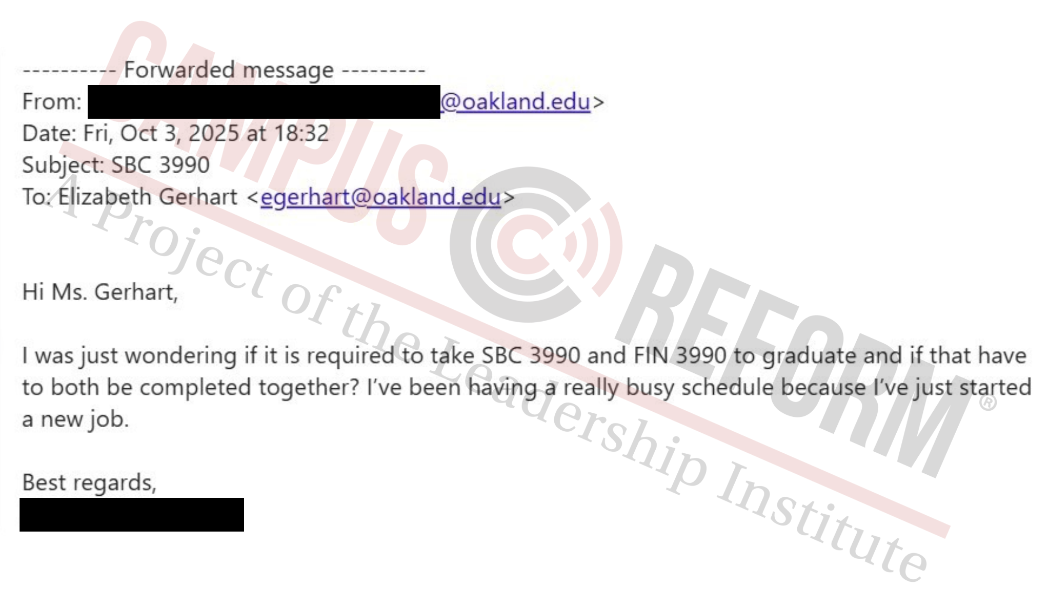 The anonymous whistleblower, who is a senior at Oakland pursuing a degree in finance, explained that one of his professors instructed him to enroll in two zero-credit courses that are related to one another: SBC 3990, a business ethics course, and FIN 3990, a finance education course.