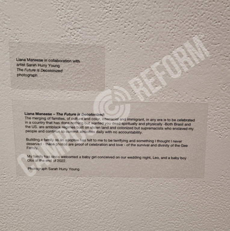 The exhibit’s placard read, “The merging of families, of culture and color, interracial and immigrant, in any era is to be celebrated in a country that has done nothing but wanted you dead spiritually and physically - Both Brasil and the US are antiblack regimes built on stolen land and colonized but [sic] supremacists who enslaved my people and continue to commit atrocities daily with no accountability.”