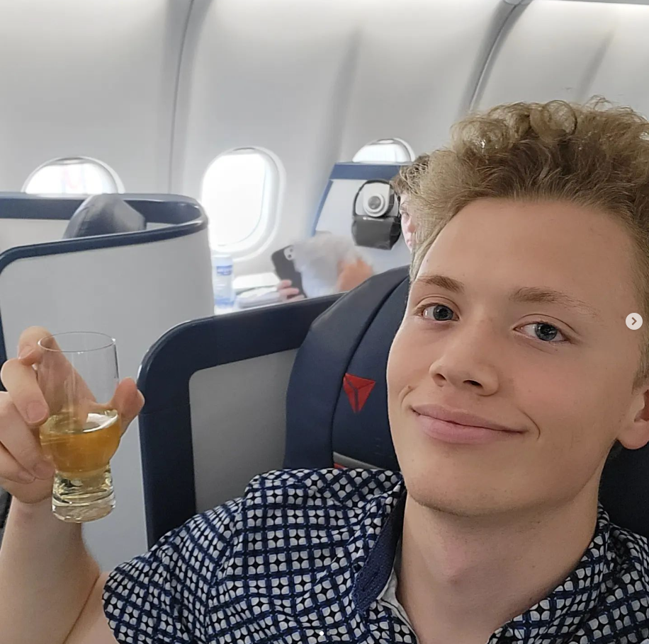 Oliver Cheese flying first class to Europe. Source: Instagram oliver.cheese