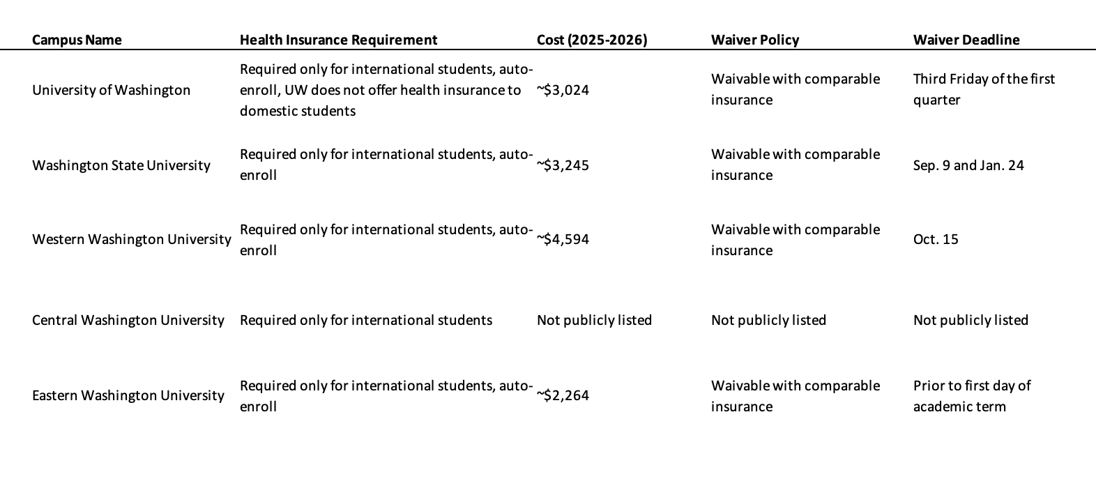 As students across Washington State return to campus, universities are enforcing updated health insurance requirements that can vary sharply between institutions.