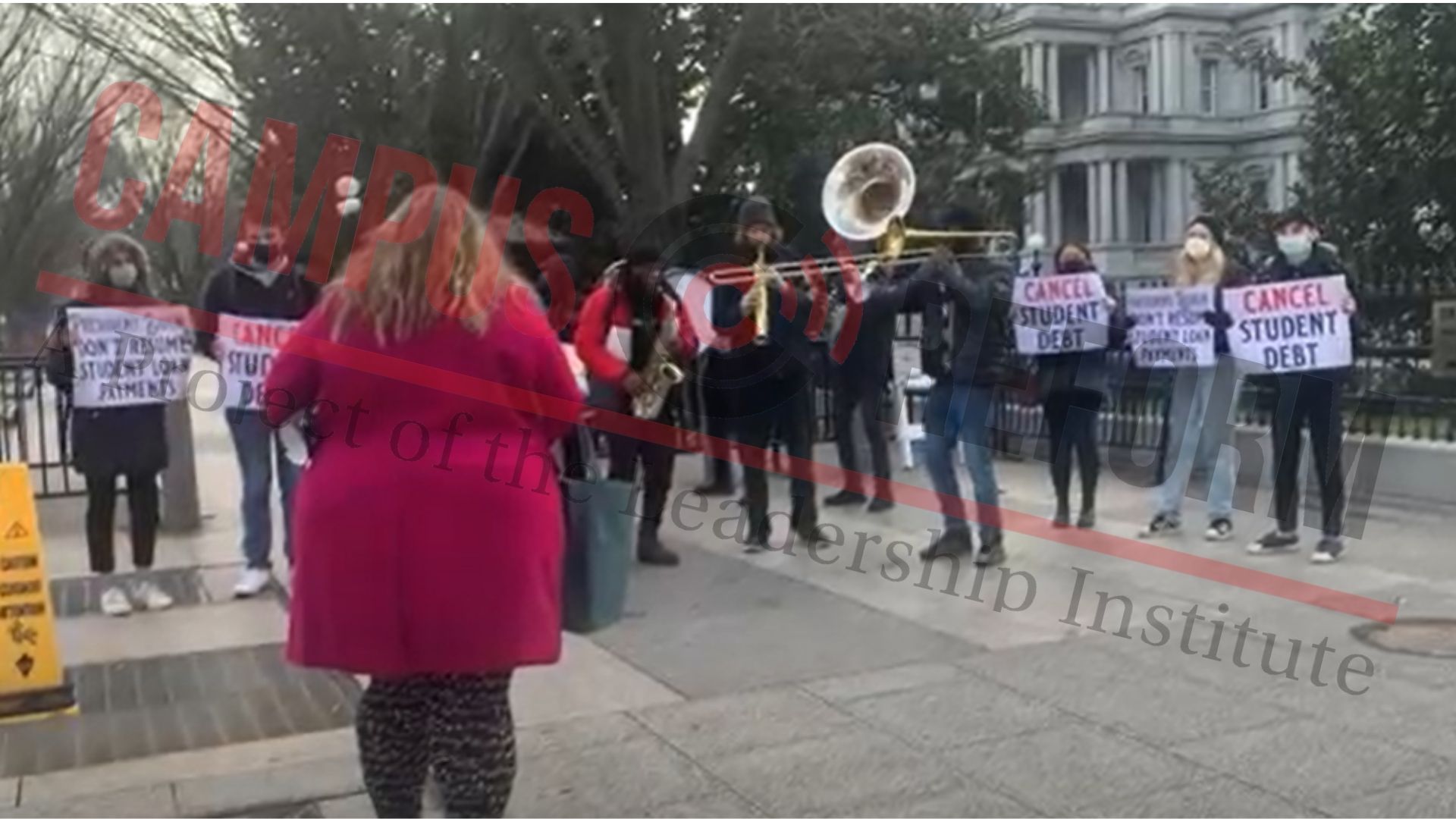 The Biden administration got a loud wakeup call this morning as a marching band accompanying a handful of college students jammed outside on the sidewalk of Pennsylvania Avenue to advocate against continuation of student loan payment.