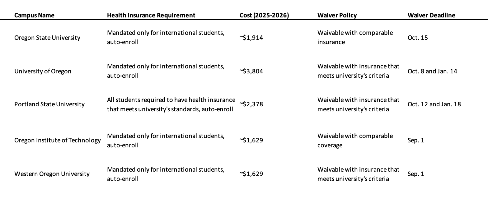 As the 2025–2026 academic year begins, Oregon universities are tightening health insurance requirements, and the rules look very different depending on whether students attend a public or private school.