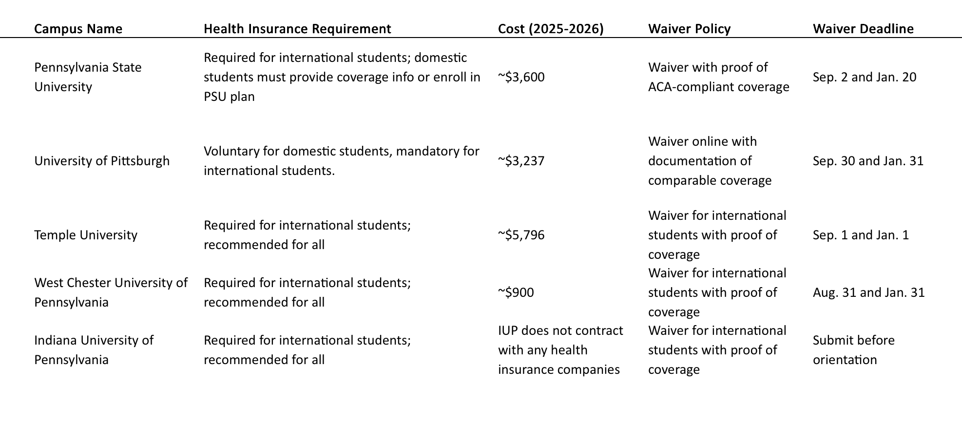 Students navigating health insurance requirements in Pennsylvania must now meet their institution’s requirement or face thousands of dollars in premium costs.