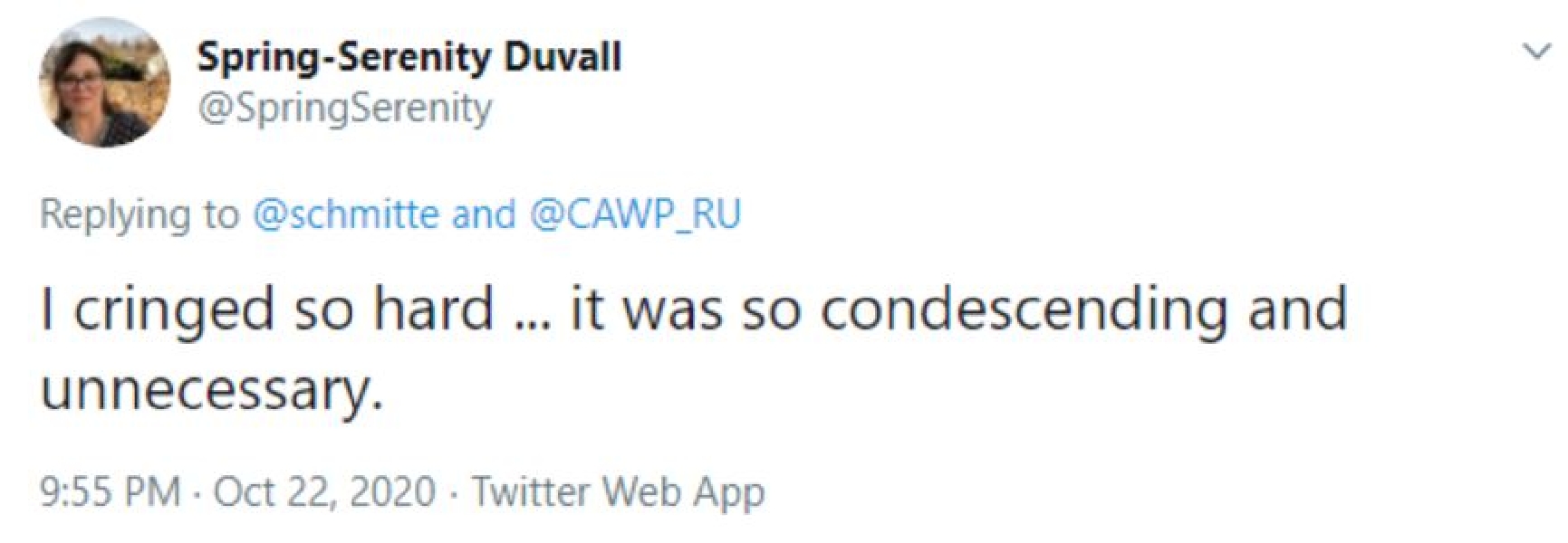 “I cringed so hard... it was so condescending and unnecessary,” she said.